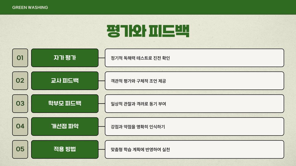 부모는 아이들의 독서 활동을 주의 깊게 관찰하고, 필요한 경우 적절한 피드백을 제공해야 합니다. 아이들이 독서에서 어려움을 겪고 있다면, 가이드를 제공하거나, 추가 자료를 추천하는 것이 좋습니다.