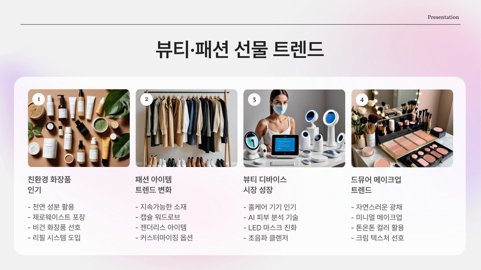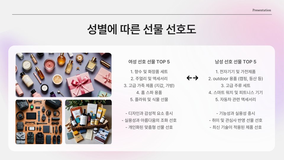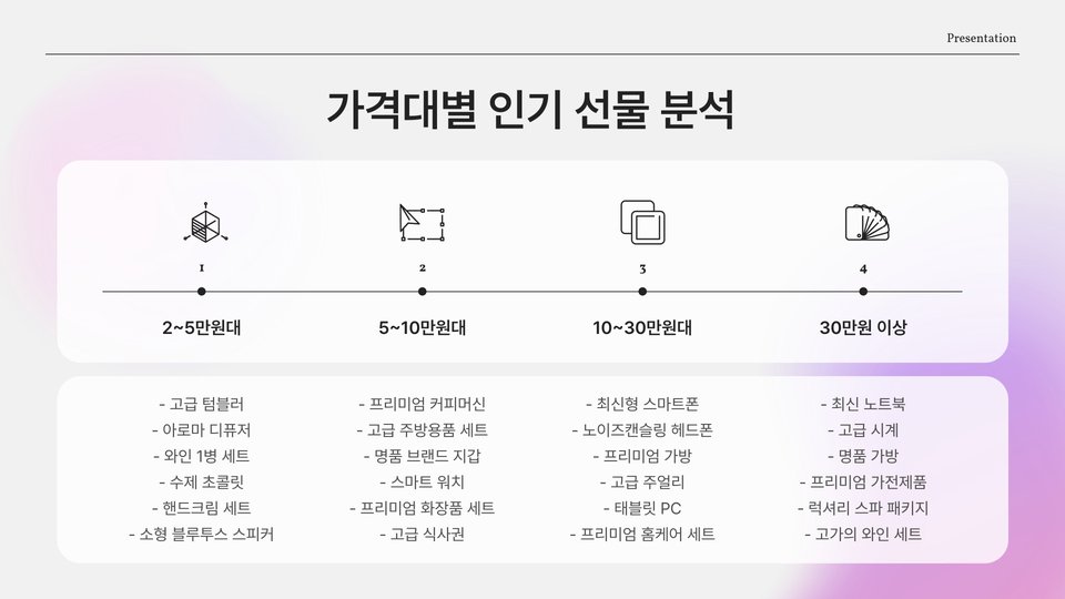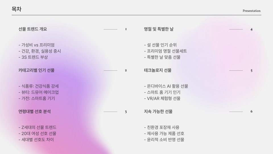 | 선물 종류 | 인기 이유 | 사용 후기 |