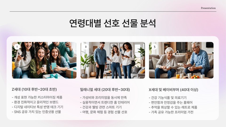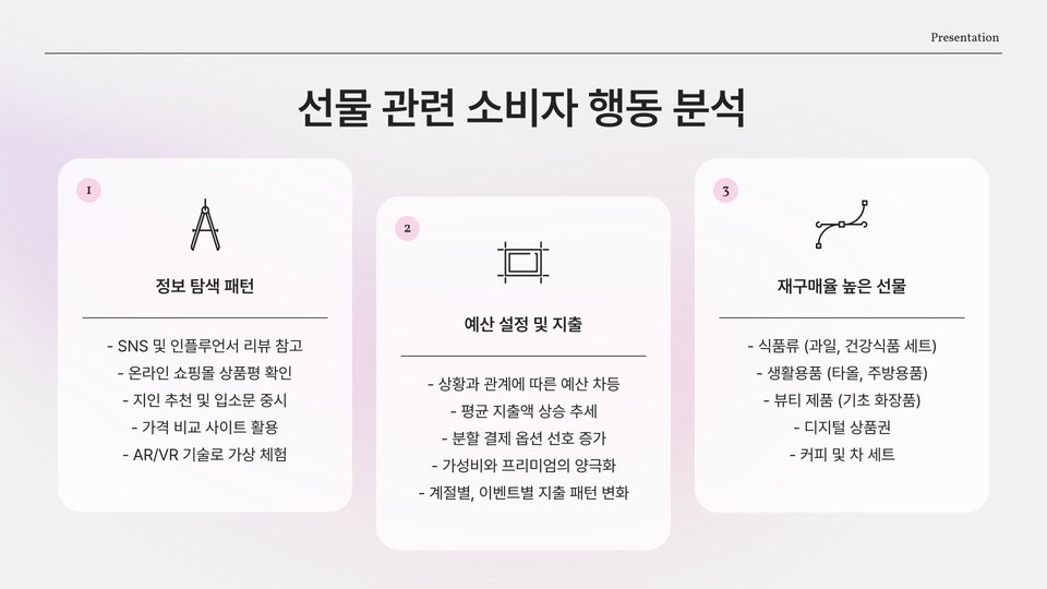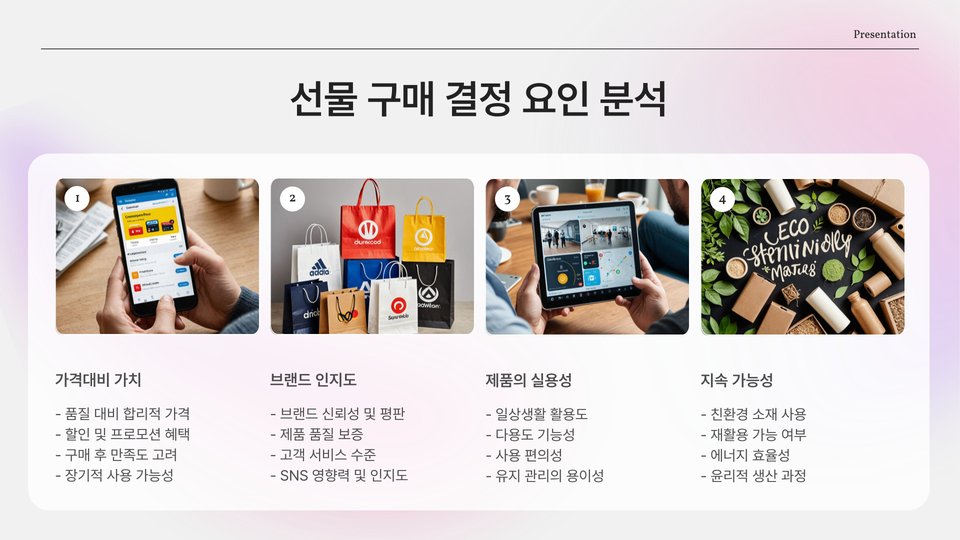 - 선물 선택 시 개인의 취향 고려 필요
