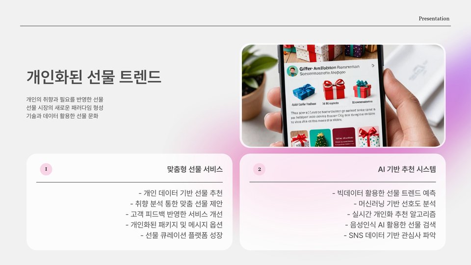 이는 소비자들이 자신에게 알맞은 제품을 찾고자 하는 욕구와도 맞물려 있습니다. 예를 들어, 맞춤형 액세서리나 퍼스널라이즈드 기프트 세트와 같은 제품은 특히 각광받을 것입니다. 이러한 제품들은 받는 사람의 취향과 기호를 고려하여 선택하거나 제작할 수 있어, 선물에 대한 만족도를 높일 수 있습니다.