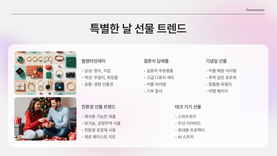 추천 선물 리스트 및 요약