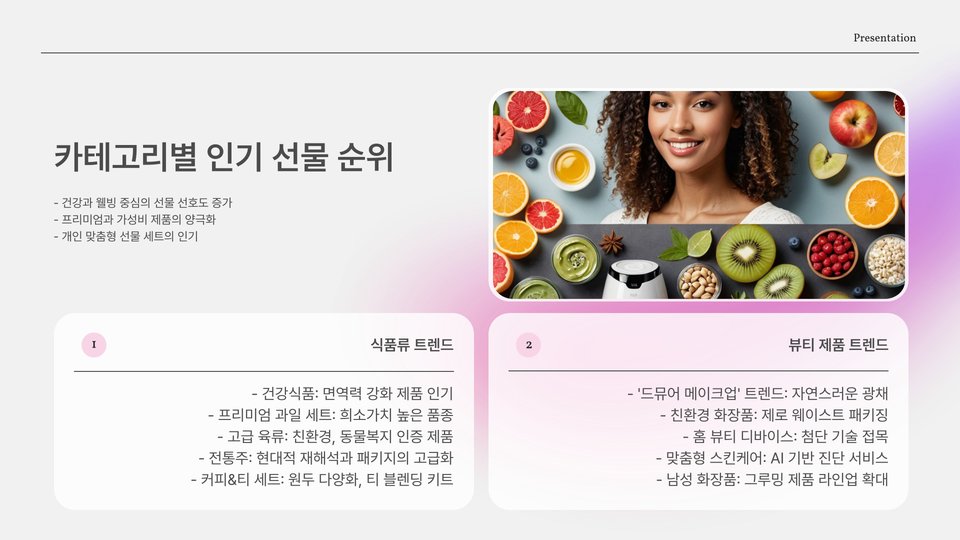 - 2025년 인기 선물: 전자기기, 패션, 건강 관련 제품