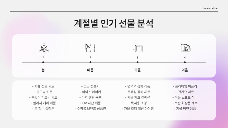 추천 선물 리스트 및 요약