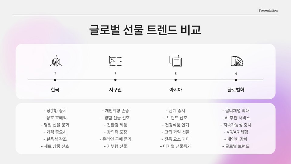 - 선물 선택 시 받는 사람의 취향 고려 필수.