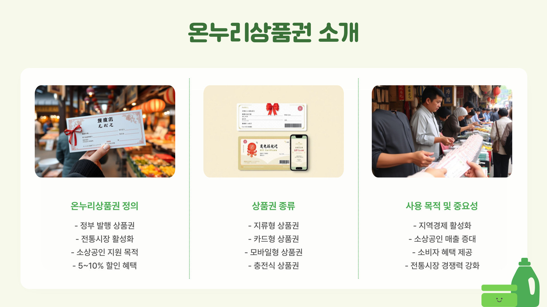 - 사용처: 전통시장 및 온라인 플랫폼