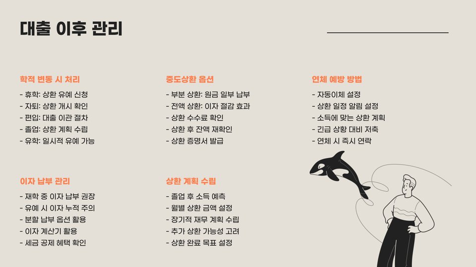 또한, 상환이 시작되기 전에 대출 조건을 충분히 검토하고, 문의가 필요할 경우 대출 기관과 상담하는 것이 좋습니다. 이는 추후 발생할 수 있는 문제를 예방하는 데 큰 도움이 됩니다.