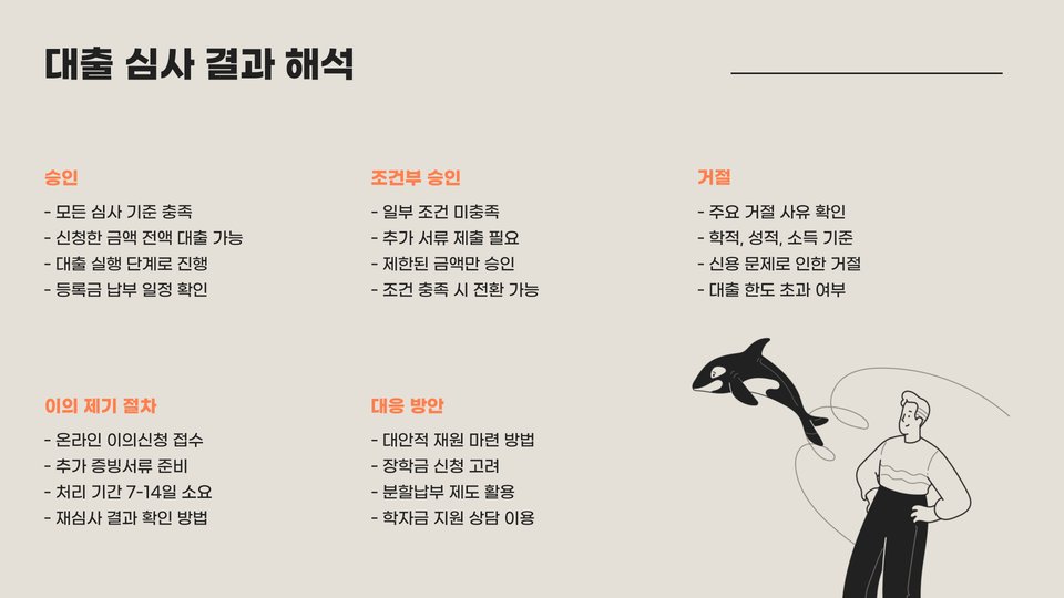 - 대출 승인 후에는 상환 조건을 반드시 확인하고 계획적으로 자금을 관리해야 함.